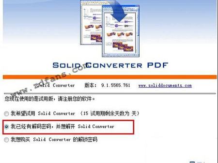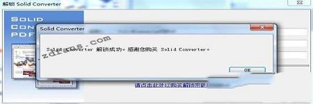 3、这时我们会看到如下图所示:提示我们solidconverter软件解锁成功,这样我们以后就可以无限制使用软件了;