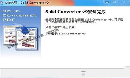 8、安装完成就会看到如下界面了,勾选"运行solid converter v9“选项后点击结束按钮,就可立即体验此PDF转换软件了。