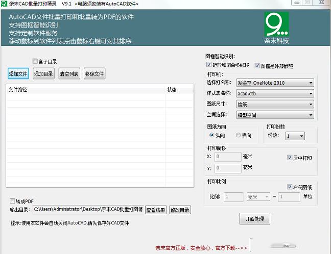 1.点击底部“添加文件”,导入dwg,dxf等AutoCAD文件;或者直接拖入文件到软件列表中2.如果想删除其中添加的一个文件,只需选中文件,然后点击“移除文件”即可