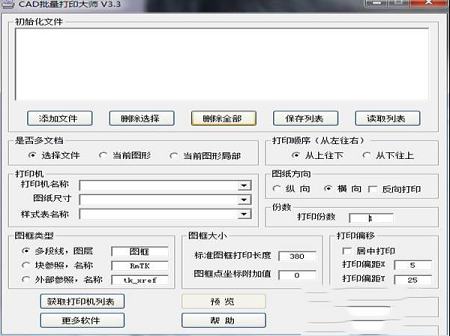 1、全空间批量打印,模型空间多图批量打印;多个布局空间多图或单图批量打印。2、多文档批量打印,依次打开多个CAD图形文件,识别上述指定空间内的图框并打印。