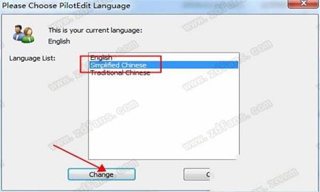 2、无需安装,双击程序;即可运行,不过初次运行会弹出"Language"语言选择窗口,在这里可选择 Simplified Chinese(简体中文)或 Traditional Chinese(繁体中文)后,点击窗口下方的“Change”按钮确定,在随后弹出的字体选择框中直接点击“确定”按钮即可;