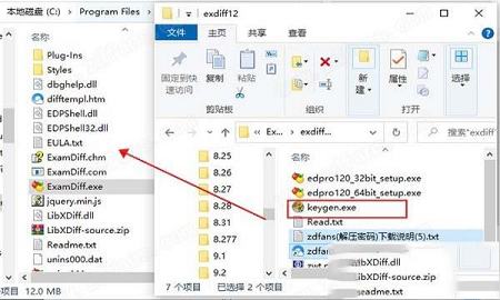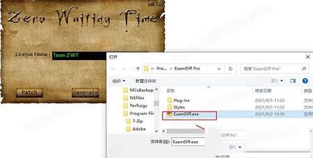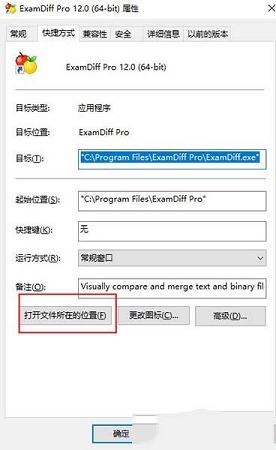 5、后会弹出窗口,我们选择安装路径下的ExamDiff.exe原程序,点击确定。