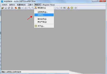 2.进入软件界面后点击“帮助”按钮中的注册选项
