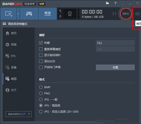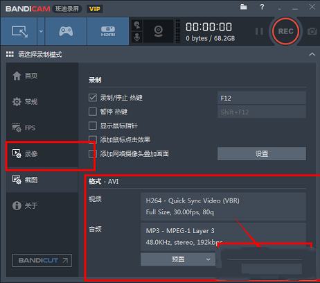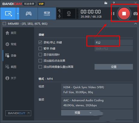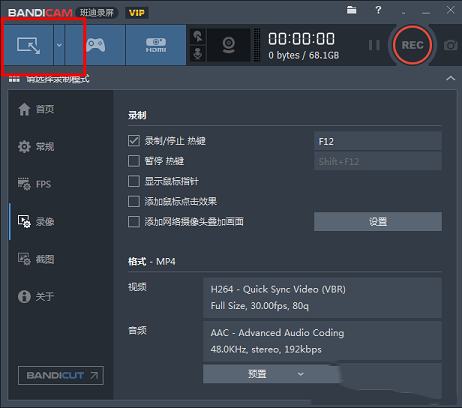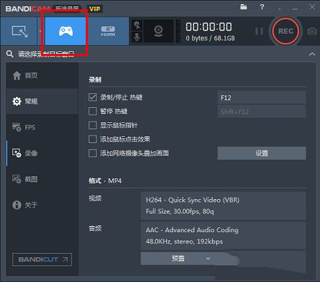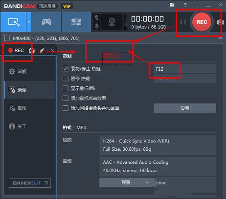点击“REC”按钮或者使用快捷键F12,即可开始录制。