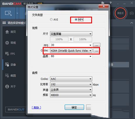 “视频”栏“Codec(编码器)”选择“H.264”,