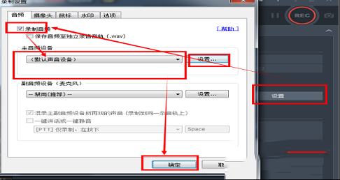 音频录制一定要启用副音频设备(主选麦克风,副选声卡的输出设备,一般是扬声器),不然会没有游戏声音的;