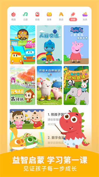 大量新鲜儿歌随时在线更新,宝宝学习永不无聊;