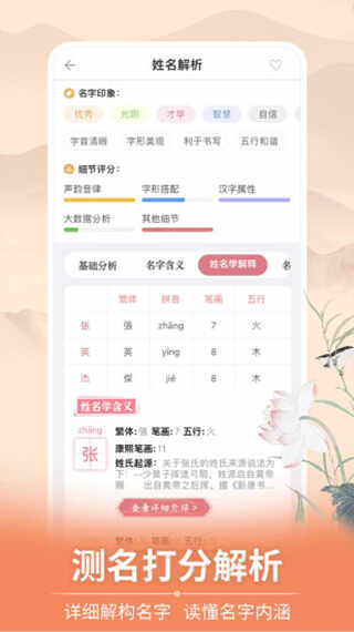 支持名字解析功能,输入自己的名字之后即可为你解名;