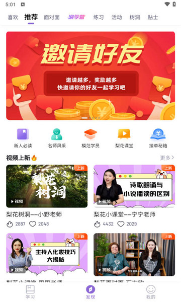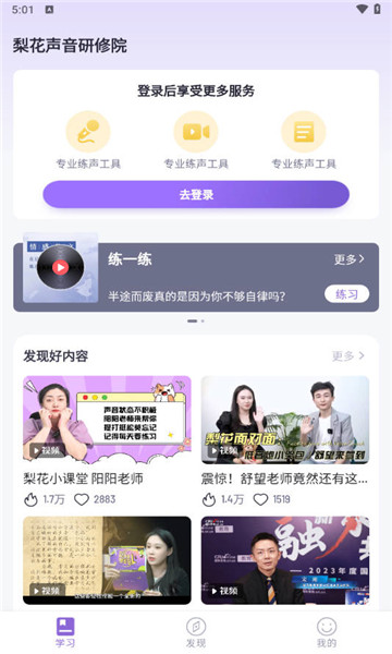 梨花声音研修院app是一款专注声音学习的平台,为用户们带去了很多的公开课程内容,大家可以在这里跟随专业的老师来进行很多关于声音的学习,使得大家的声音可以更加具有价值,需要的话可以来下载使用。