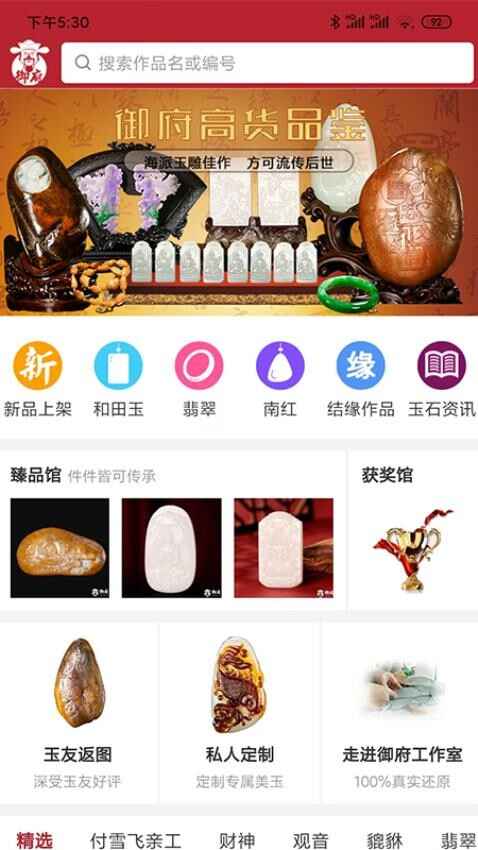 御府和田玉app是一款关于高档玉器以及玉石品牌在线交易的一站式综合服务平台,这里为用户提供海量的功能 ,其中主要包括新品上架、和田玉、结缘作品、玉石资讯、以及翡翠等,通过浏览各种热门的资讯选择感兴趣的专题快速进行解读,获取更多关于玉石的内容以及当前市场交易的价格。不仅如此,还可以查看最新上架的商品选择感兴趣的快速进行资咨询,了解真实的价格,将优质的商品进行一键下单,轻松享受专业暖心的配送服务,想要解锁更多的好物,那就赶紧下载体验吧~