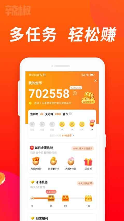辣椒极速版助你轻松赚钱,分享原创视频,内存更小,更省流量,使用流畅,为你提供多样有趣的短视频内容但更轻量。