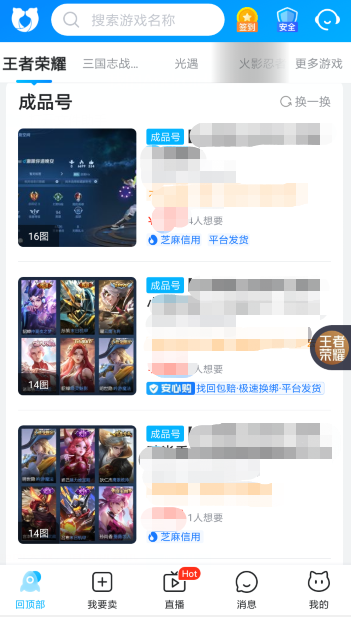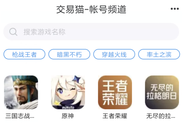 3、多样化的账号类型交易,让交易猫app可以满足玩家们不同的游戏需求。除了可以在专区当中购买到成熟的高级游戏账号以外,玩家们还能够在平台内选择各种初始开局号、金币号、道具号等等,这些不同类型的游戏号,都将满足大家不一样的需求。