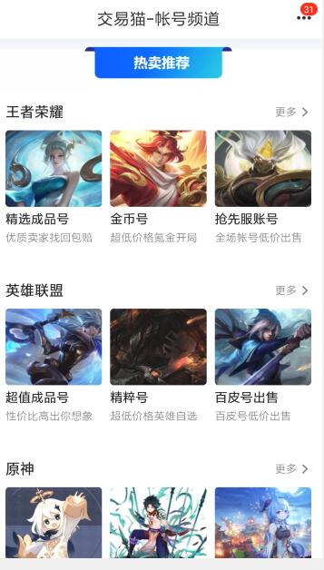 对于各种游戏大神而言,培养一个高等级的游戏账号是不那么复杂的。不过,如果想要脱坑一款游戏的时候,账号应该如何快速的进行处理?一个靠谱的交易平台又应该如何去寻找?今天,小编将为大家推荐一款交易猫app,各位可以进入到该软件内容了解各种游戏的账号交易信息,同时也支持大家发布自己的商品。