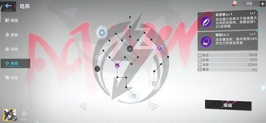 共鸣是角色养成中的一个系统,玩家们需要先点击右下方的武装选项,此时你们就可以进入众角色养成页面了,进入这个页面后大家可以看见自己拥有的角色,小伙伴们选择一个需要养成的角色然后点击一下就可以进入该武装的养成了,在这个养成页面的左边有五个选项,分别是情报、技能、涂鸦、共鸣、风格,小伙伴们选择第四个即可看见共鸣页面了。