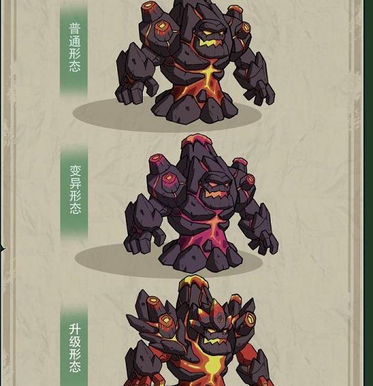 熔岩巨人是生长在火山内部的魔兽,虽然行动缓慢但有着狂暴的熔岩爆发能力,一旦进入它 的范围就必定会受到伤害。它一共有三种形态,分为普通、变异和升级形态。
