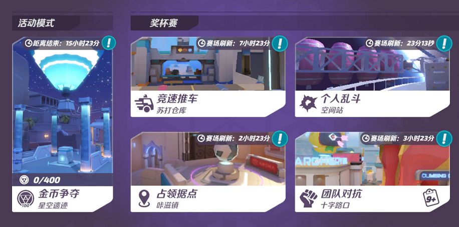 在3V3玩法里,有非常多的模式可供选择。比如团体对抗里进行阵营对抗、水晶攻防赛里攻守对抗、占据据点里团队配合、护送运载中限时争夺、竞速推车里狭路相逢等等,总有一款适合你。除了多人玩法,单人也有乱斗玩法。玩家随即进入战场,加入混战。在六人中各自为战,先达到过关标准的获得胜利。