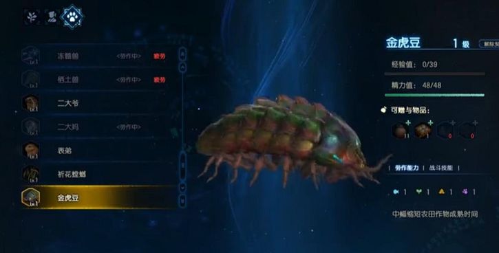 “金虎豆”在乌衣国获取,根据任务提示,在主线完成后可击杀,作用是中福缩短种植时间,在战斗中向前攻击加倒地,二级加中毒效果。