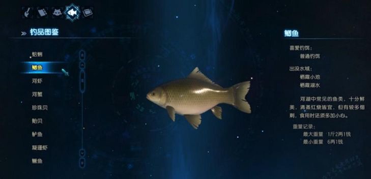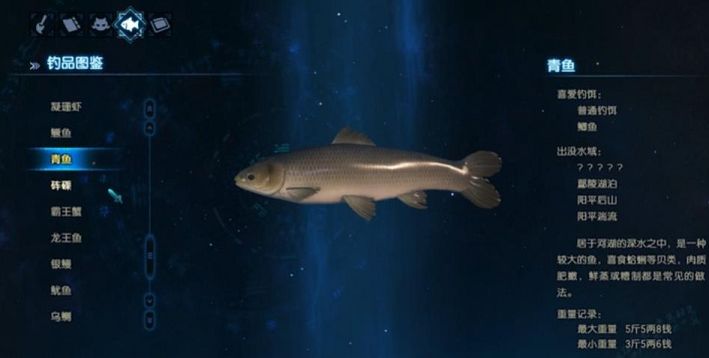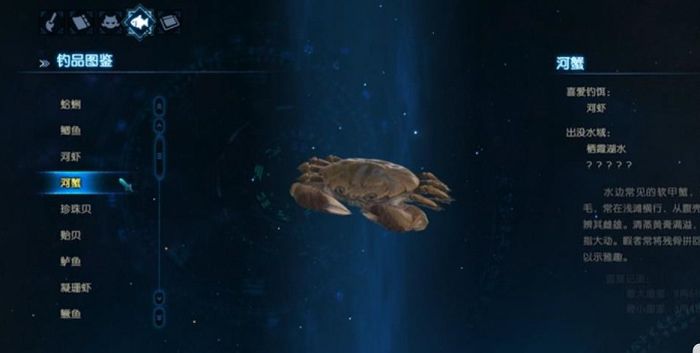 鳜鱼喜爱普通钓饵和鲫鱼,出没在得桐水洼、阳平木桥和阳平断桥。青鱼喜爱普通钓饵和鲫鱼,出没在林中瀑地、鄢陵湖泊、阳平后山和阳平湍流。砗磲喜爱贻贝和鳜鱼,出没于光明野清池。霸王蟹喜爱鲫鱼、河蟹和鳜鱼,出没在罪渊寒潭、虬枝深水。
