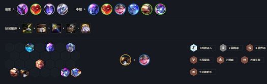 首先第一套是法师类型的玩法,这一套的强势点在于后期的aoe输出爆炸,而且实战当中基本上可以打大多数的阵容,由于控制很多即使面对大成的狗熊也是不怕的。装备方面的话其实大家看阵容也知道怎么用了。