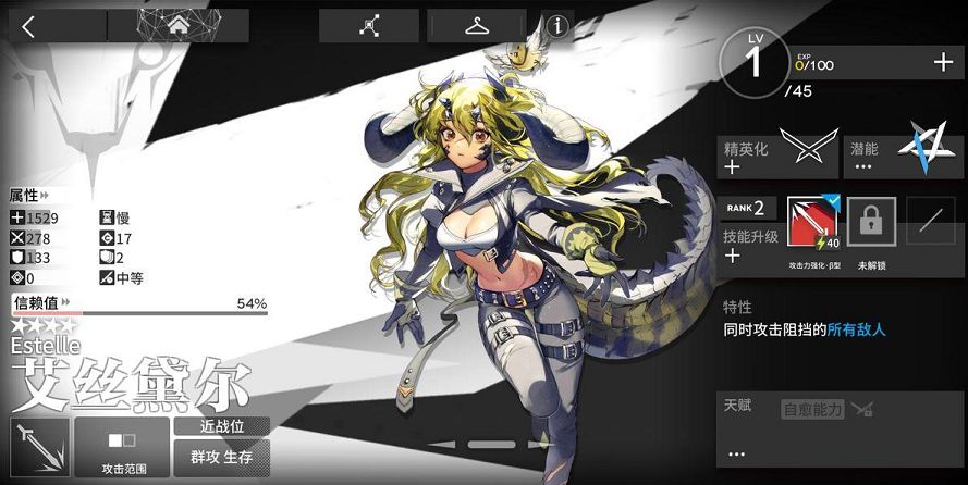 2、技能的特点是提升攻击力115%的攻击力,但是不再能被其他角色所加血。在这个模式下是没有多余角色的,因此这个不被治疗的副作用也就相当于没有用。