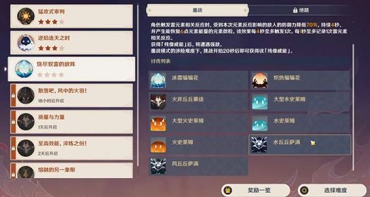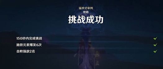 第二天的难度也是两星,出现的怪物大部分为冰系,所以大家可以带一些火系角色来打融化,这样效率会快很多,在鏖战中他的规则限制是玩家必须在三分钟之内解决战斗,同时还要打出十二次的蒸发或者融化反应,最后击败三个首领即可成功,从这里就可以看出队伍中必须要有一个火系了,同时有浪人的玩家也可以带一个,因为浪人本身的战技是有扩散效果的,所以可以让融化来的赶快,当然没有浪人的也可以用砂糖,只要是风属性都可以,绝路的规则都一样,只是时间减少到两分半了,其他限制和鏖战是一样的,练度高自然就可以打过。