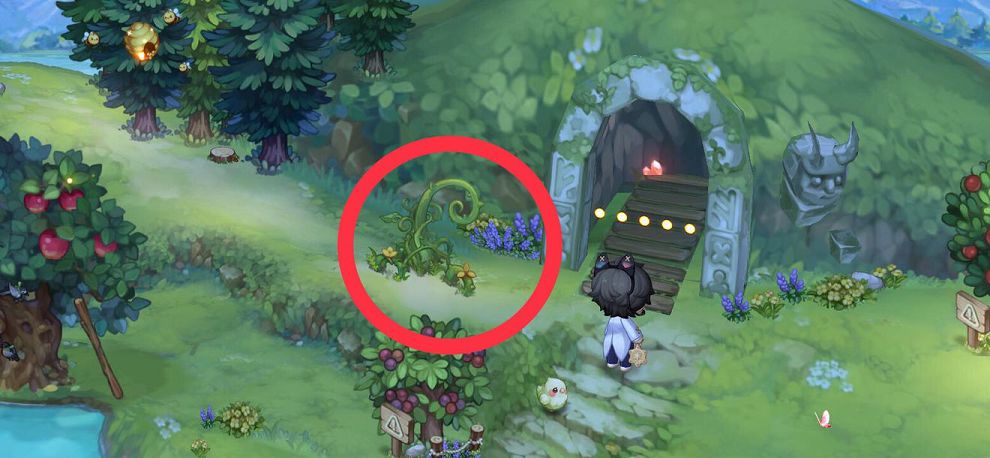 小伙伴们要来到青木森林,在山洞门口能看到一株藤蔓,它就是皮皮藤,等到晚上的时候,前来这个位置就能看到它,上前靠近它,被它甩一百次,就能收获一个甩来甩去的成就了。
