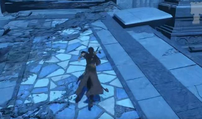 随后往里走玩家会看到一块小浮石,在这个场景中,会有很多的浮石可以跳上去,这些浮石会自动将玩家带往苍虬的位置。