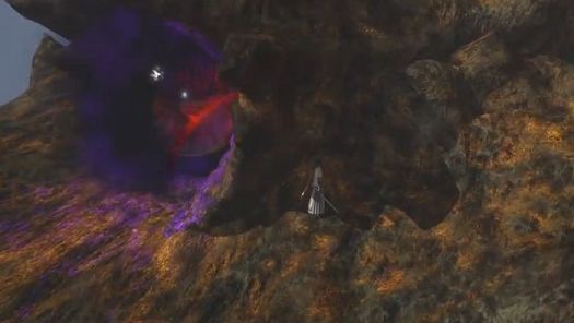 大家一定要跳着躲过去,此时你们就会出现在魔眼身上,魔眼的外貌有点类似LOL中的虚空之眼,他会从中心发射出毁灭射线攻击你,小伙伴们千万不要用肉身硬抗哦,基本上就是螳臂当车。