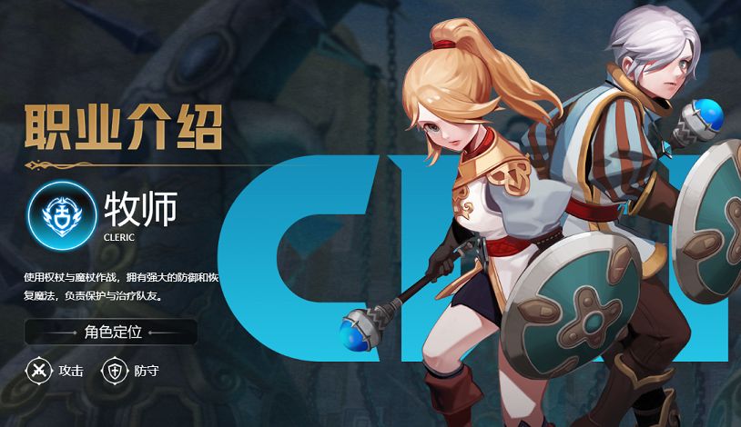 角色定位为攻击和防守,攻防都不错。使用权杖和魔杖展开作战,防御值高,可以恢复魔法元素,是队里不可缺少的辅助。此外他还可以保护和治疗队友。