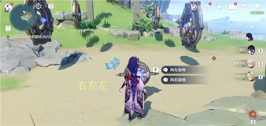 第二个地点是地图中央的岛屿,大家传送进入,第一个装置依次选择右左,然后去往第二个装置依次选择右左右,接着去往后方的第三个装置依次选择左左右,同样拾取晶核去最后一个地点。