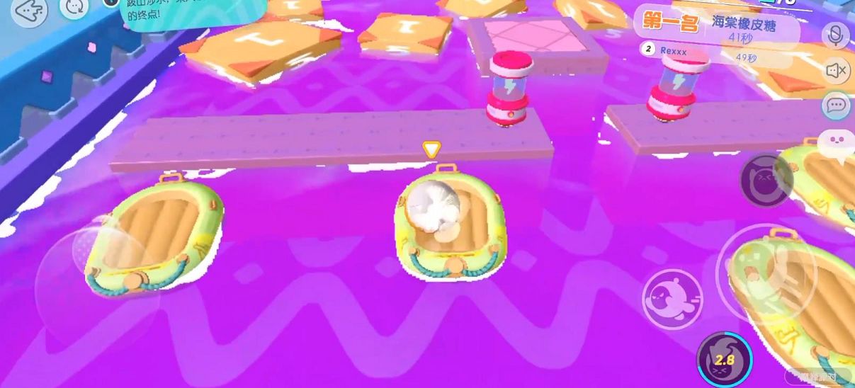 在这个地图上,小伙伴们刚开始要借助皮艇,让自己跳到水上的一个站脚平台,再利用这个平台跳过水面的另一边,如此就过玩了第一轮的考验。