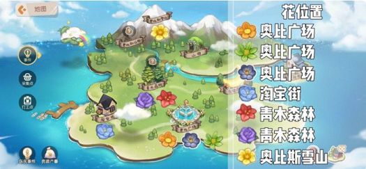 【七色花】:这个成就算是比较麻烦的了,我把具体的七朵花位置在上图标记了出来,下面会给大家带来每一朵花的具体获得方法。