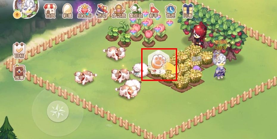 上前就会显示一个猫爪一样的小图标,这个图标就意味着能收获了,将这个猫爪图标按住,然后移到想收的菜上面,就能进行收取啦。
