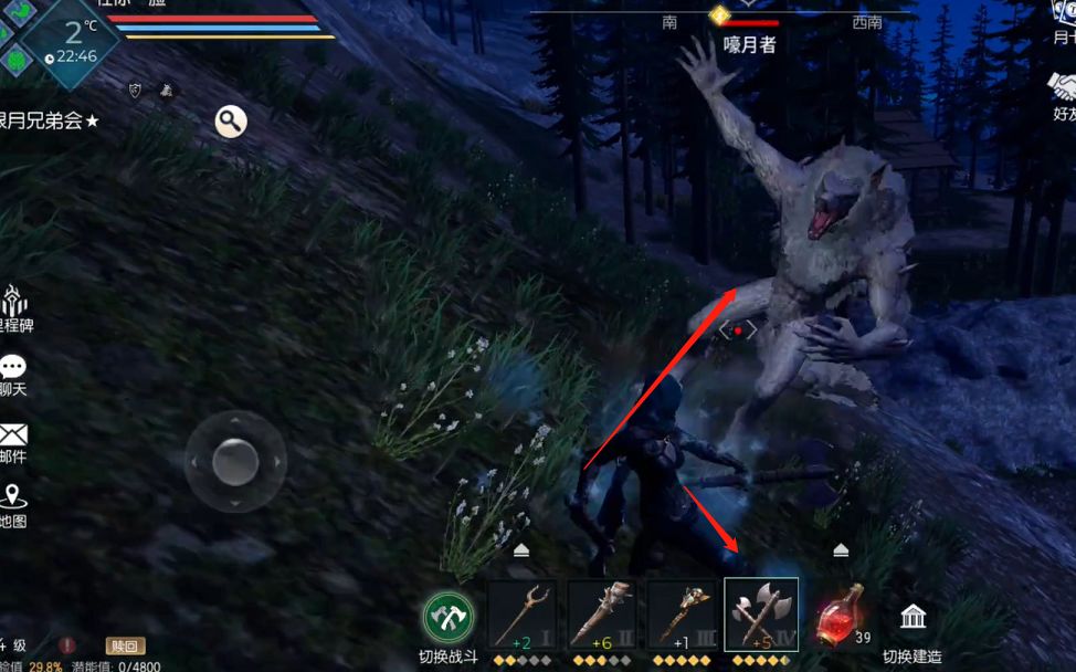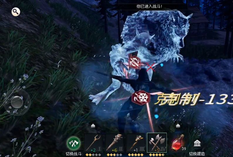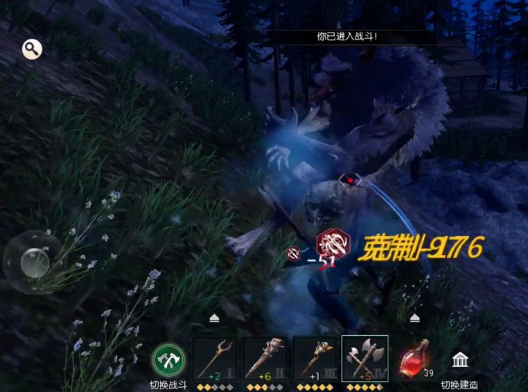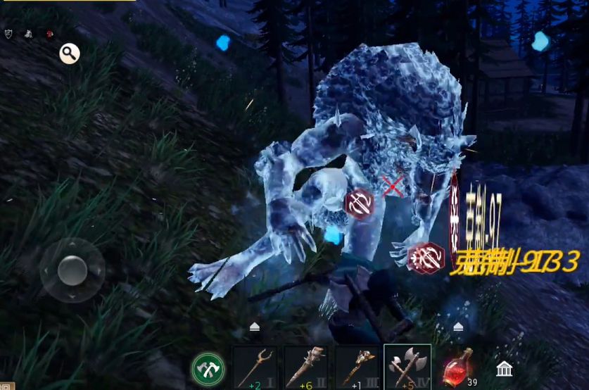 进入作战后,找准机会用斧头去砍就好,斧头是能克制该生物的武器,不停的砍砍砍,最终将其击败就完事了。也可以用宠物去抗,我们看着它们打就好当然也能从后面偷袭补补伤害。但注意只抗一个,2个扛不住。