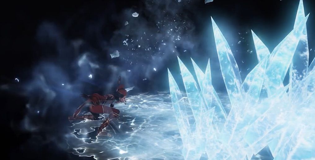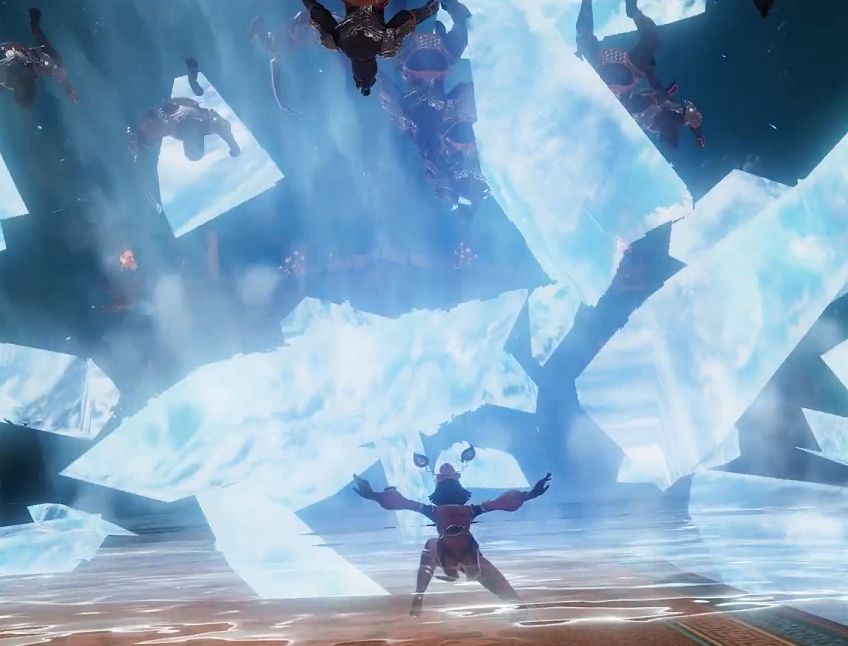 三战技、冰晶之簇:往正前方的地上猛拍一掌,随后地面会爆出一堆冰晶,该冰晶会冰冻范围内的敌人,并在一秒后爆炸,爆炸后地面还会产生一道冰晶旋风对敌人造成二次伤害。