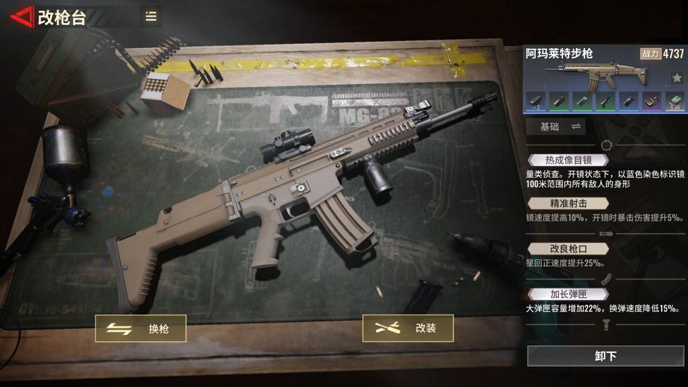 当然,小伙伴们为枪械加装不一样的配件,其所提供的加成效果肯定也是各异的,同时不同的配件也会提供不一样的扩展属性。再举个例子,小伙伴们选择加装红点瞄镜的话,就能得到热成像目镜的效果,而这一效果在追击对手的时候就很有用,而且自身撤离时也可以派上用场。