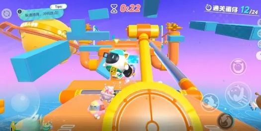 竞速模式包括滚筒回旋、下坡请注意、波涛迷宫、左摇右晃、七彩韵律、彩道冲刺等21张地图,可以通过关卡图鉴自行练习,熟记各处赛道障碍便能加快通行效率。