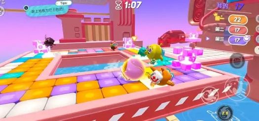 生存赛制包括小心脚下、偷心单身蛋、命悬一线、危机列车等9张地图,有的需要记住屏幕上显示颜色的方块,有的需要在复杂的地形防止跌落,玩法上乐趣十足。