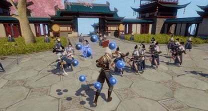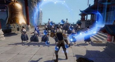 三战技:将八粒雷灵珠汇聚到一起然后往前推去,此时雷灵珠将化成一个蓝色的雷电圆球,处于圆球周围的敌人会被聚集在一起,同时不断被雷电击打。