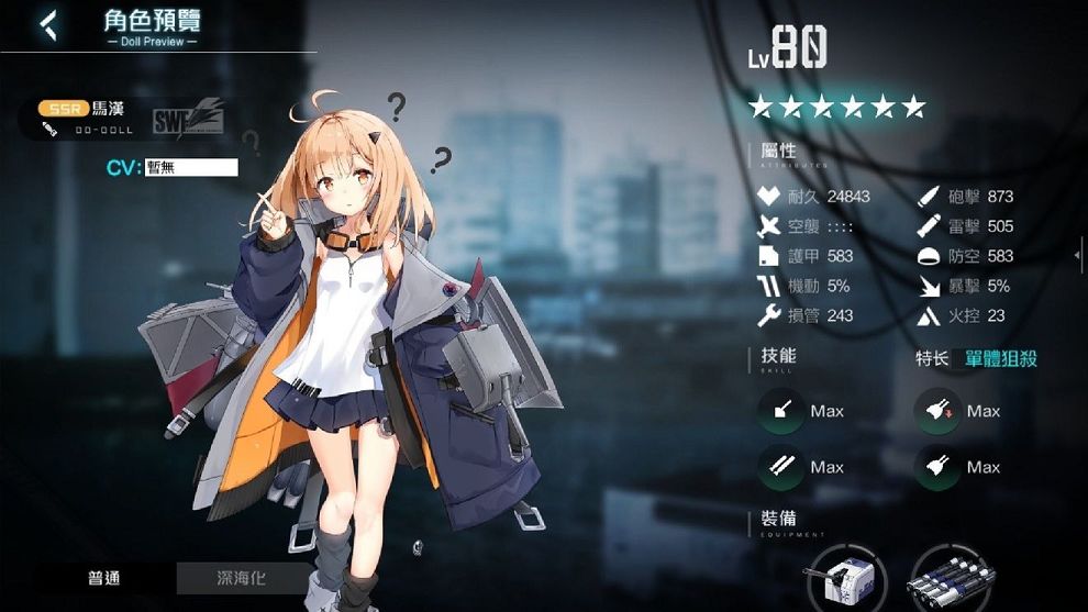 埃塞克斯满属性耐久21075、空袭1285、护甲492、防空492、机动暴击5%、损管226、火控21。普攻战斗空袭可以召唤一些战机对前方敌军进行普通的空袭攻击。必杀则组合式强化空袭,可以对敌方全体造成伤害。常规技能骚扰更是可以对最近距离的2个敌人发动攻击造成空袭伤害。
