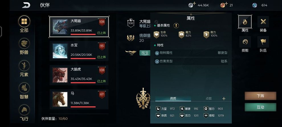 以上就是黑暗与光明手游怎么驯服生物以及宠物捕捉驯服技巧分享,小伙伴们在前期的时候,可以考虑去驯服一只完美鹿,提醒一下如果喂养的是完美饲料,是能将宠物培养为完美品质哦。