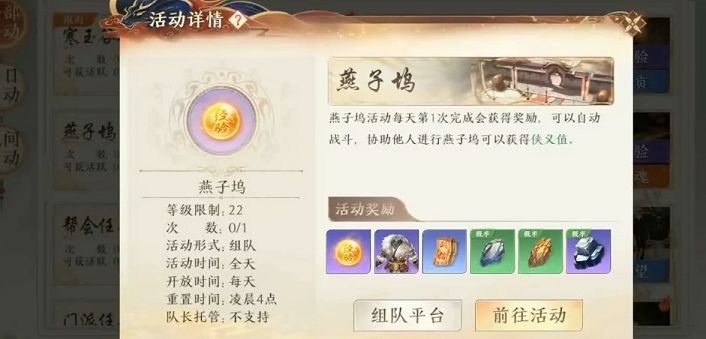从第二天开始上线后先做一条龙的活动,像是燕子坞、勇闯山寨、清缴麻匪、江湖缉凶、宵小。这些活动对玩家的战斗的需求不高,所有人都可以做。做完了之后再把剩余的零碎任务都做完,然后挂挂机,有时间精力就把账号战力提升一下。