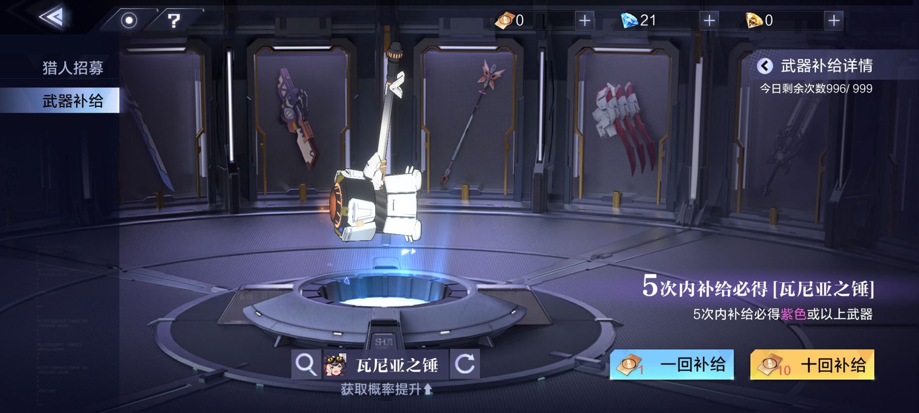 1. 招募-武器补给,选择心愿武器,只需要完成30次抽奖玩家就会必得瓦尼亚之锤这把武器。