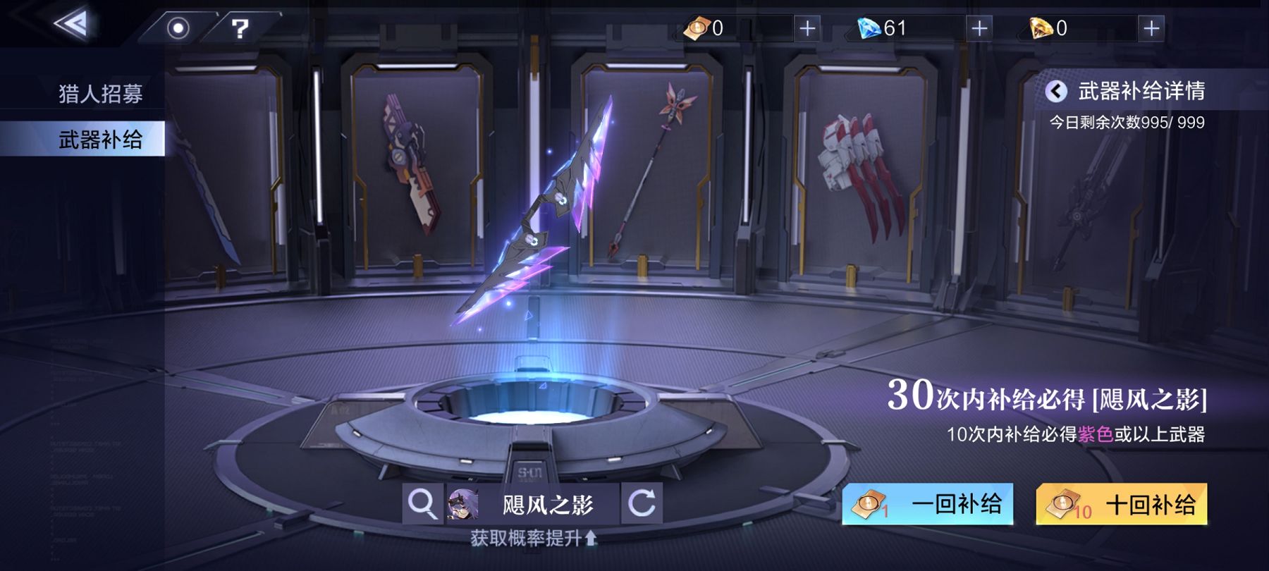 玩家可以进入招募系统,点击武器补给选项,可以自行选择所需的橙色武器,然后进行抽取,每抽10次必定出一把紫色武器,每抽取30次必定获得玩家的心愿武器,该招募有保底机制,不至于玩家耗费大量的财力也没法获得装备,但是该方法对于土豪玩家来说是没问题的,贫民玩家就不太行了。
