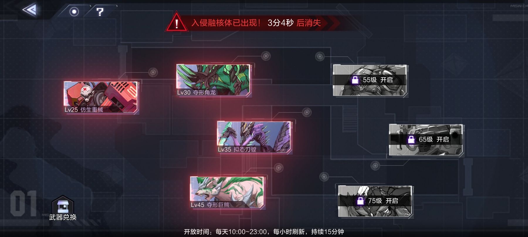 准点活动,参与队伍完成最后一击即可获得随机蓝色武器,每日有三次机会获得武器。