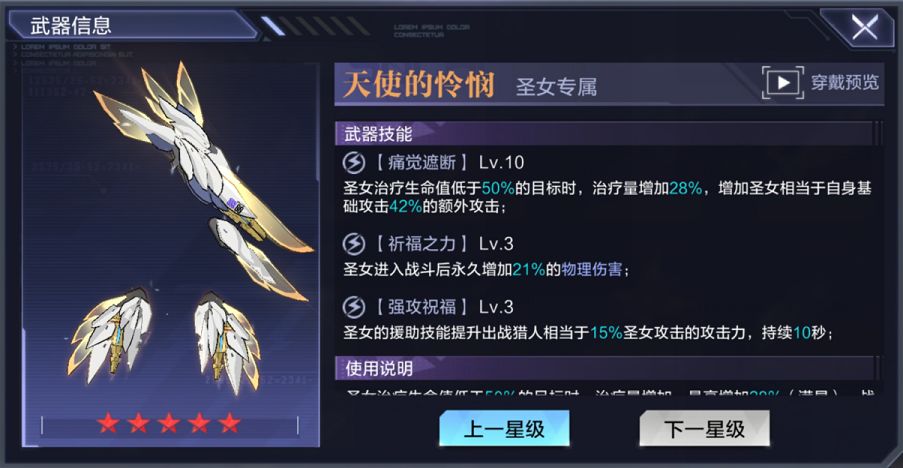 这把武器能够对圣女的辅助能力进行进一步的加强,本身圣女这个角色的治疗能力就是现在所有角色里面最强力的了,加上这把武器的祈福之力的增伤BUFF,也能够让该角色成为一个万金油,不管在哪个队伍里都能占有一席之地,这把时对于A级角色来说能尽力获取就要获取的一把武器。