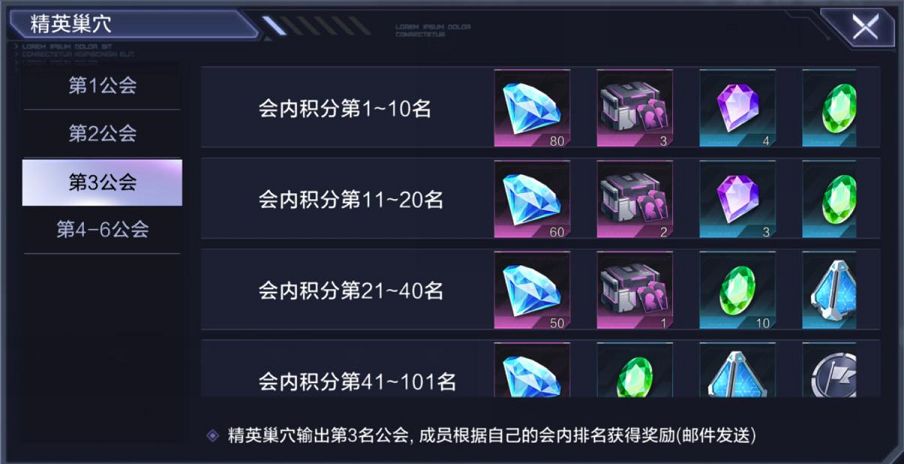 2、玩法结束后,将根据公会名次,给全公会成员发放排名奖励,奖励将通过邮件发送。