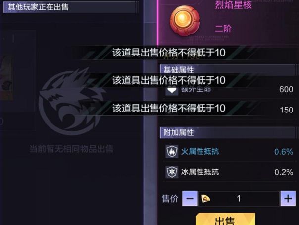 要注意的是,上架货币只能使用星钻,每项商品系统都内定了最低价格,玩家设置的最低价格不能低于系统设置的价格,商品成功出售后玩家即可获得钻石,但交易所会从中收取5%的钻石作为交易税,交易税若是低于1钻石,系统不会收取任何费用,商品上架会在交易所保留12小时,若12小时后还没有出售成功,则会自动下架,玩家可以在出售界面取回道具,也可以选择继续上架该道具。