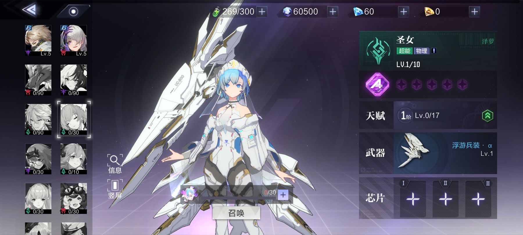 1级(S阶解锁):圣女在战斗过程中将持续恢复自身的能量,每秒恢复最大能量值的2.5%(该效果在助战位置时也生效);