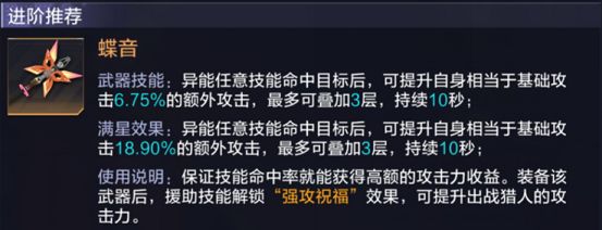 装备1/5/精英3专武时,释放异能援助技能将提升出战猎人相当于异能攻击5%/10%/15%的额外攻击力,持续10秒;